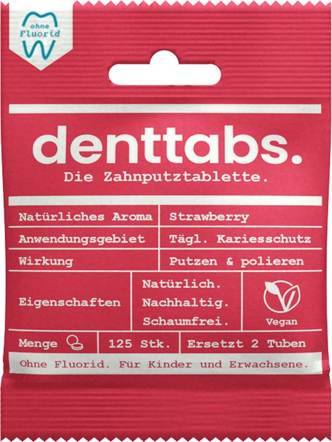 De fluoridevrije tandpastatabletten met milde aardbeiensmaak zijn speciaal ontwikkeld voor het hele gezin. De formulering is gemaakt van 100% natuurlijke ingrediënten en polijst ook gevoelige melktanden bijzonder zacht op basis van cellulose. Op deze manier worden de tandoppervlakken glad en bieden ze minder oppervlakte voor tandplak en bacteriën om aan te vallen.