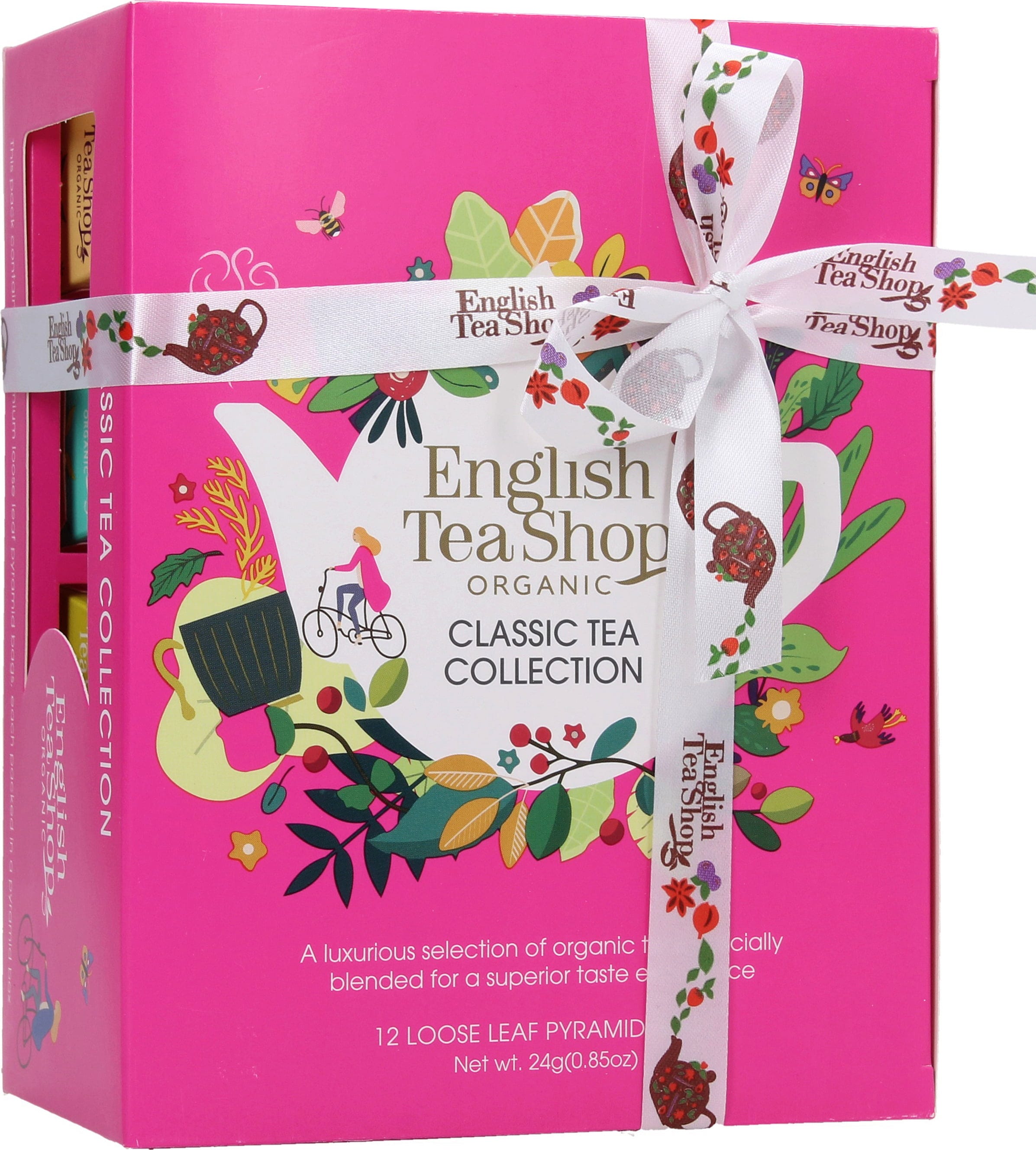 In deze klassieke theecollectie van Eglish Tea Shop vind je twaalf uitstekende theesoorten in de vorm van theepiramides. Met een verscheidenheid aan groene thee, zwarte thee, vruchtenthee en kruidenthee is er zeker voor elk wat wils - de perfecte proefset voor iedereen die graag thee drinkt.
