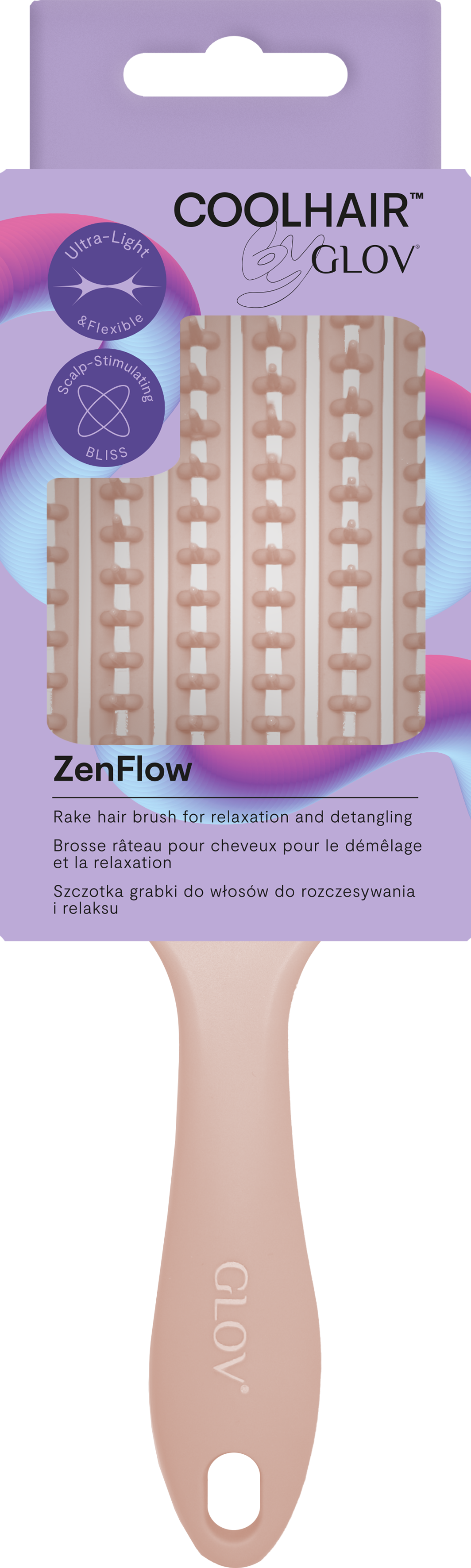 Pro-tip: Voor het ultieme ontspanningsmoment gebruik je de ZenFlow Hair Brush op vochtig haar in combinatie met je favoriete leave-in conditioner – of borstel je haar ondersteboven – voor een massage-effect.