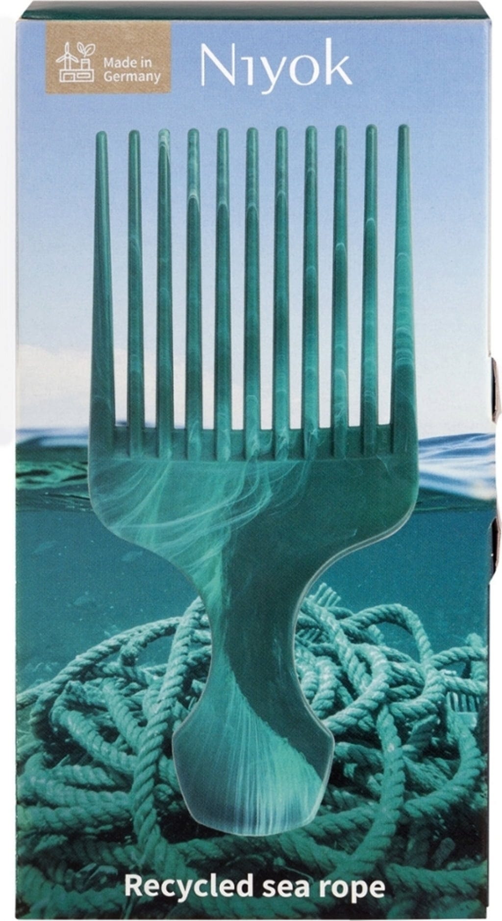 Deze kam is ideaal voor pluizig, getextureerd en krullend haar. Dankzij de brede, stevige tanden ontwart en definieert hij het haar voorzichtig – zelfs bij voluminus haar. Dit alles zonder trekken of haarbreuk. Het robuuste, ergonomische ontwerp ligt prettig in de hand en is perfect voor styling en dagelijkse verzorging. Gemaakt van en gerecycled uit maritieme touwen, is de Afrokam bovendien een volledig