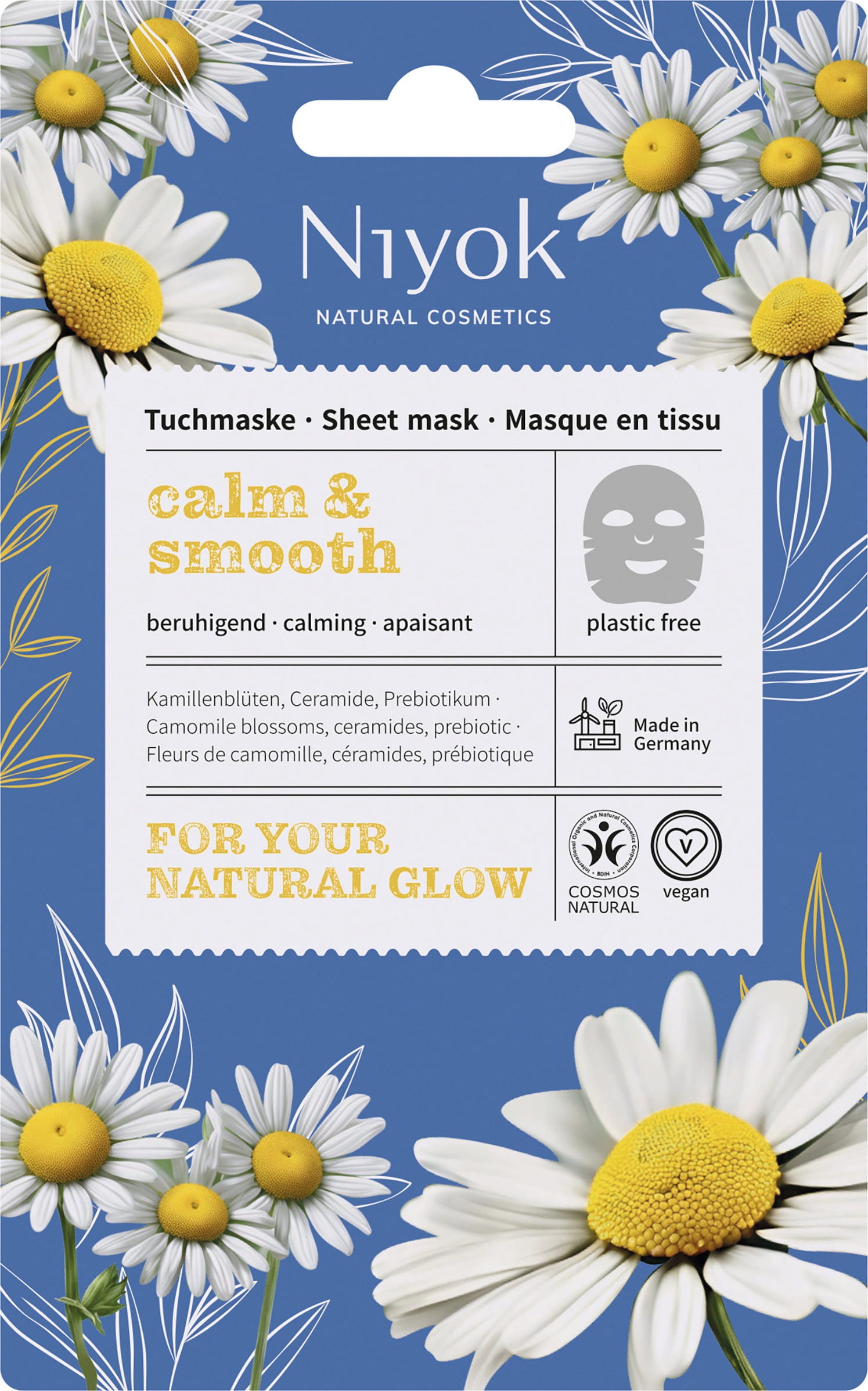 De gevoelige huid heeft rust, evenwicht en zachte, doelgerichte verzorging nodig. Dankzij de formule met kamille, ceramiden en prebiotica is dit plasticvrije sheetmasker de ideale verzorging voor de gevoelige en geïrriteerde huid. Het zorgt voor een evenwichtig, fris en gerevitaliseerd huidgevoel, dat wordt gecombineerd met een bewust zelfzorgmoment.