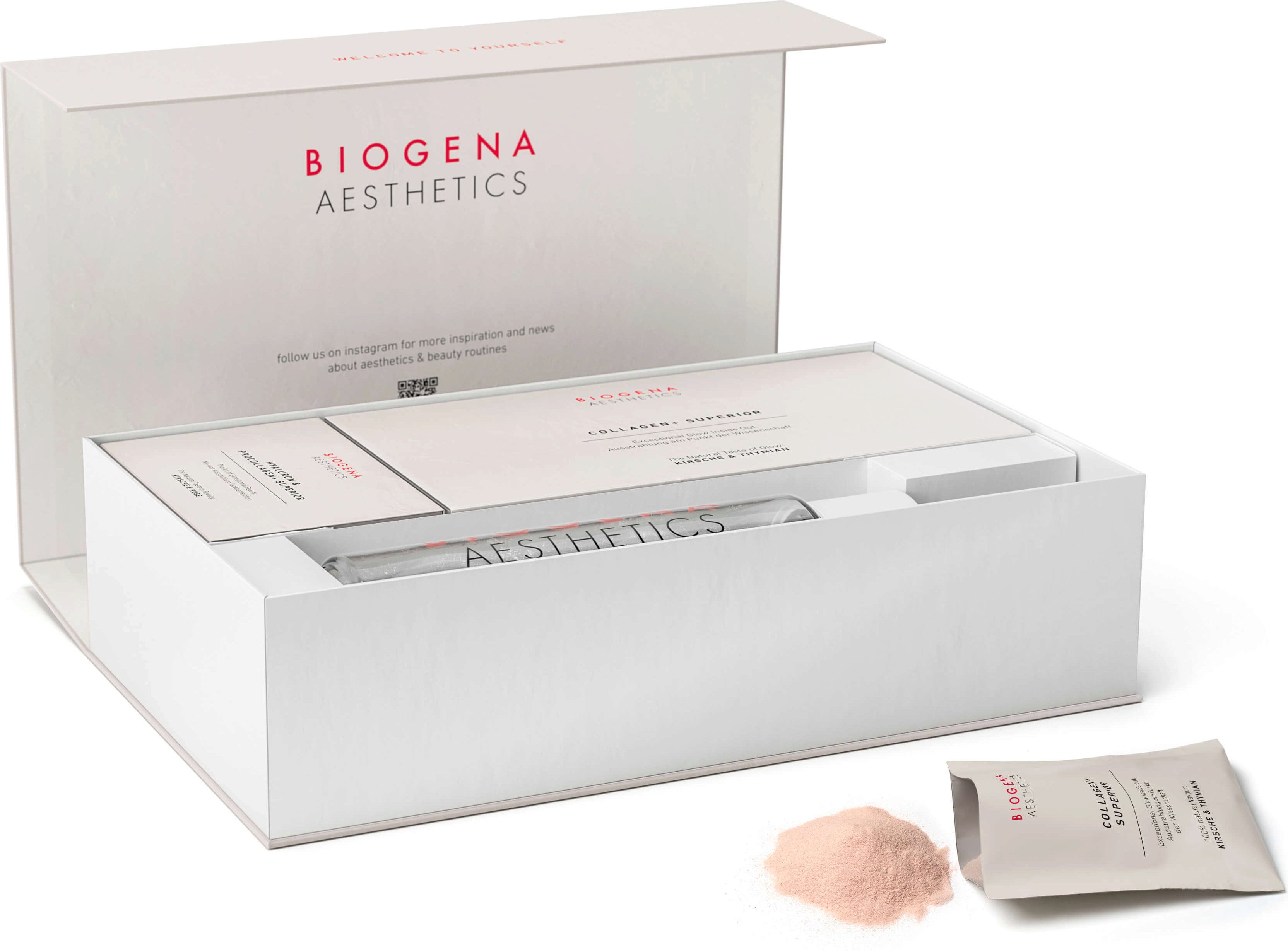 De BIOGENA AESTHETICS Geschenkset nodigt je uit in de luxueuze wereld van schoonheid en combineert twee populaire topproducten: Collagen+ Superior en Hyaluron & ProCollagen+ Superior - ideaal voor een fris, verzorgd uiterlijk.