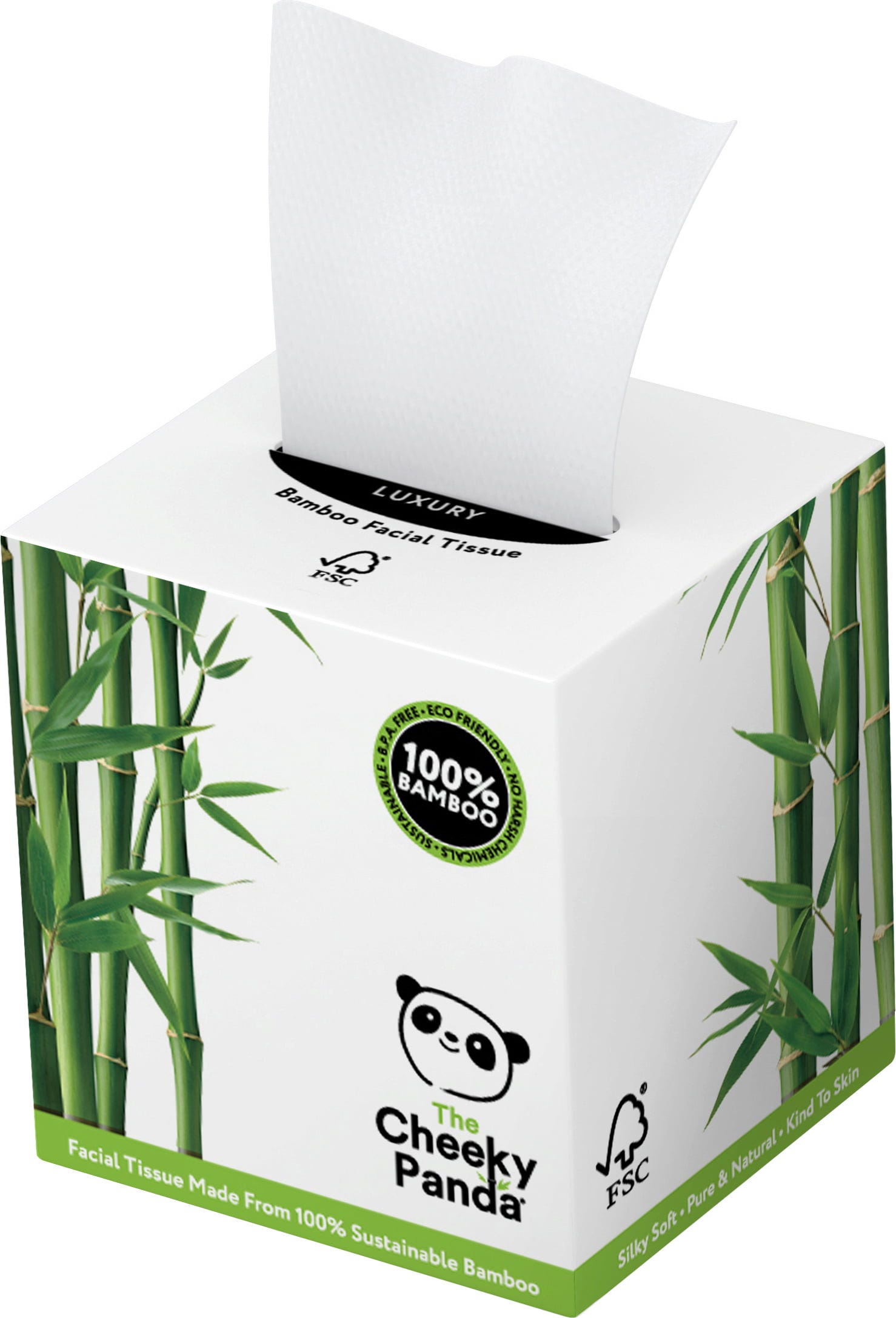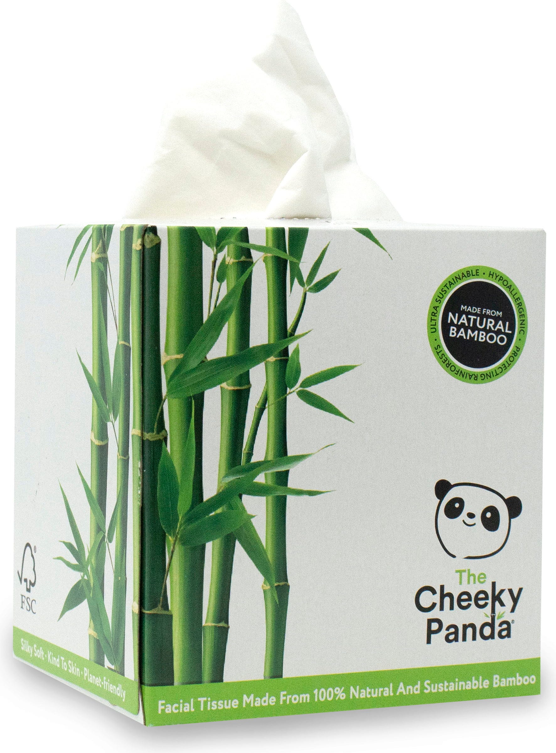 Vroegtijdig niezen? Lopende neus? Geen probleem met deze ultrazachte, geurloze tissues. De tissues zijn gemaakt van natuurlijk en FSC-gecertificeerd bamboe, en hypoallergeen en duurzaam. De tissues en verpakking zijn bovendien veganistisch en plasticvrij.