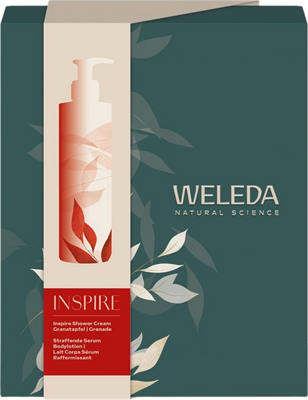De Granaatappel Cadeauset bevat een voedend duo bestaande uit de Inspire Shower Cream en de Granaatappel & Maca-Peptiden Verstevigende Serum Body Lotion. De twee producten bieden een sensueel verwennende geur- en verzorgingservaring en vullen elkaar perfect aan.